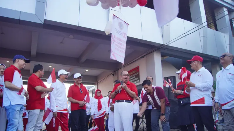 Dua balon merah putih berisi banner kecil dilepas langsung oleh Wali Kota H. Adhan Dambea dalam seremoni yang digelar Jumat (1/8/2025).
